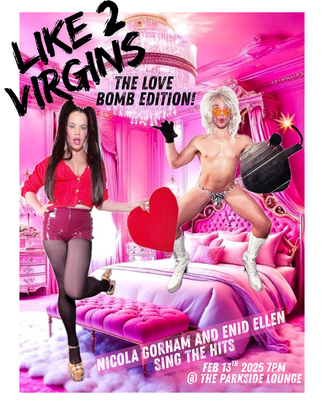 LIKE 2 VIRGINS: THE LOVE BOMB EDITION! Nicola Gorham and Enid Ellen sing the hits!
